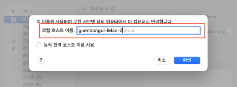 호스트이름 영구 변경(MacOS)