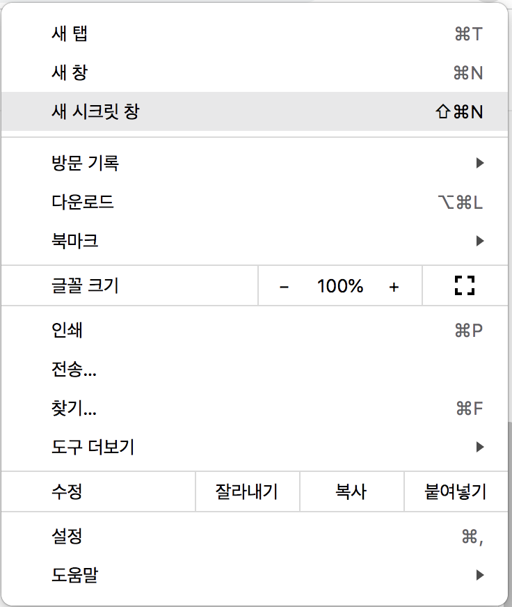 이제 웹 사이트에서 로그인 상태인 경우에만 포스트 생성, 수정 버튼이 표시됩니다. 지금은 웹 사이트를 새로고침하더라도 이전 계정에 대한 세션 정보가 남아있기 때문에 자동으로 로그인 상태입니다. 새로운 브라우저 또는 시크릿 창을 실행하여 웹 사이트에 접속할 경우 포스트 생성과 수정 버튼이 사라진 것을 확인 할 수 있습니다. 크롬 웹 브라우저를 사용하고 있다면 우측 상단에 더 보기 버튼에서 새 시크릿 창을 클릭하면 시크릿 모드를 사용 할 수 있습니다.