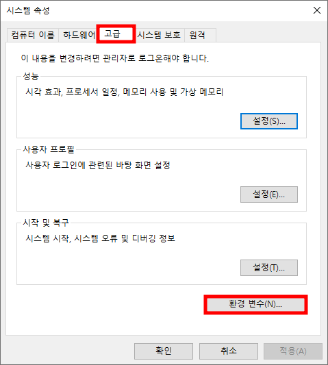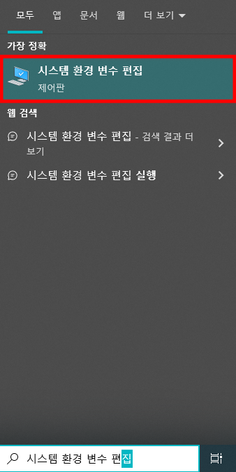 시작 | 시스템 환경 변수 편집 검색 | 시스템 환경 변수 편집으로 이동합니다.