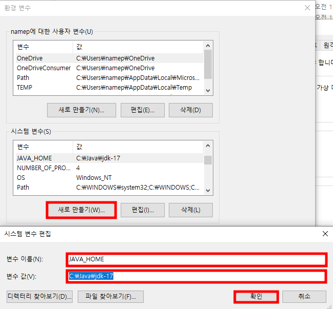 시스템 변수에서 JAVA_HOME을 추가합니다.